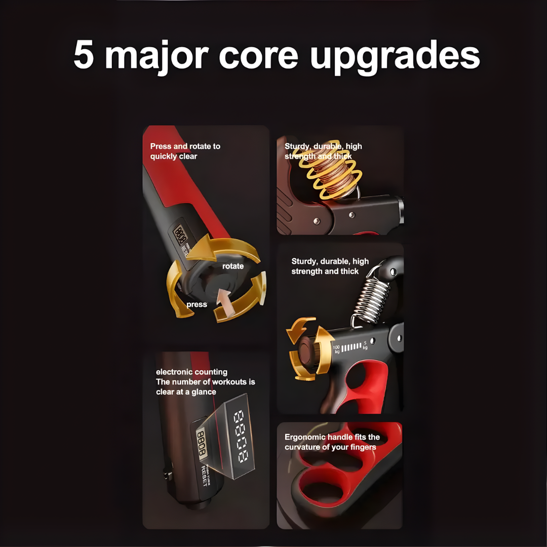 Lo uso después del gimnasio para mejorar mi fuerza de agarre y la diferencia se nota. El ajuste de resistencia es muy práctico y el contador ayuda a llevar control de las repeticiones. Material firme y cómodo en la mano.